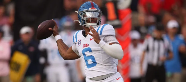 Trinidad Chambliss rose to the occasion and rallied Ole Miss on a clutch comeback win over Georgia in the Quarterfinal. The Rebels’ quarterback has thrown for over 300 yards in four of his past five starts and has now gone three straight games without throwing an interception.