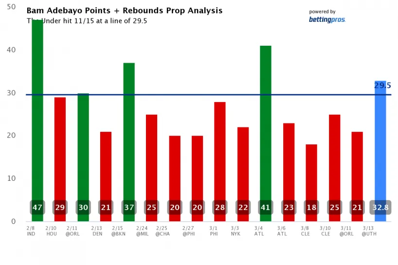 Bam Adebayo OVER 29.5 Points/Rebounds vs. Utah Jazz (-111)