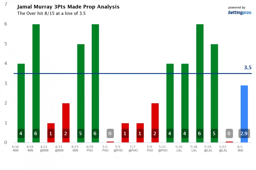 Jamal Murray Over 3.5 Three Points (+125)