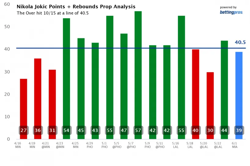 Nikola Jokic has been among the most dominant players in the NBA over the last three years. He can do some of everything, pass, rebound, and score. That is why I like combining these stats to get more betting value. Jokic is averaging 29.9 points and 13.3 rebounds during the playoffs. That means Jokic is consistently getting over 40.5. That gives bettors more opportunity for Jokic to get these stats.