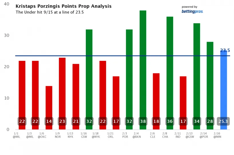 Kristaps Porzingis Over 23.5 Points (-111 FanDuel)