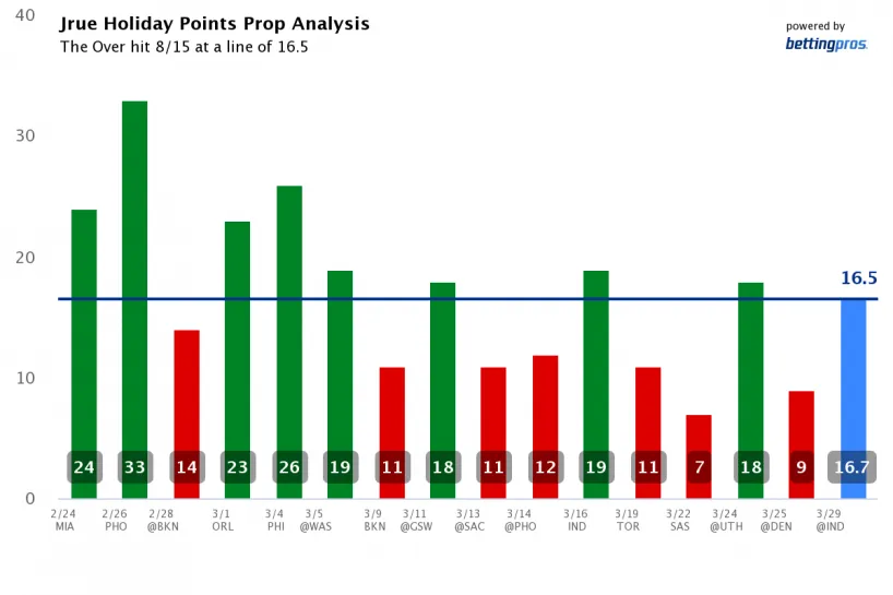 Jrue Holiday Over 16.5 Points (-115)