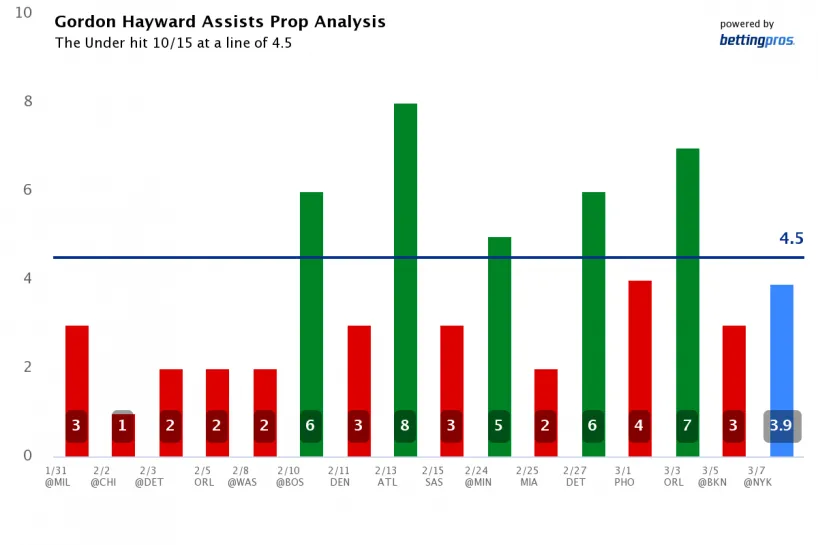 Gordon Hayward Under 4.5 assists (+110 DraftKings)