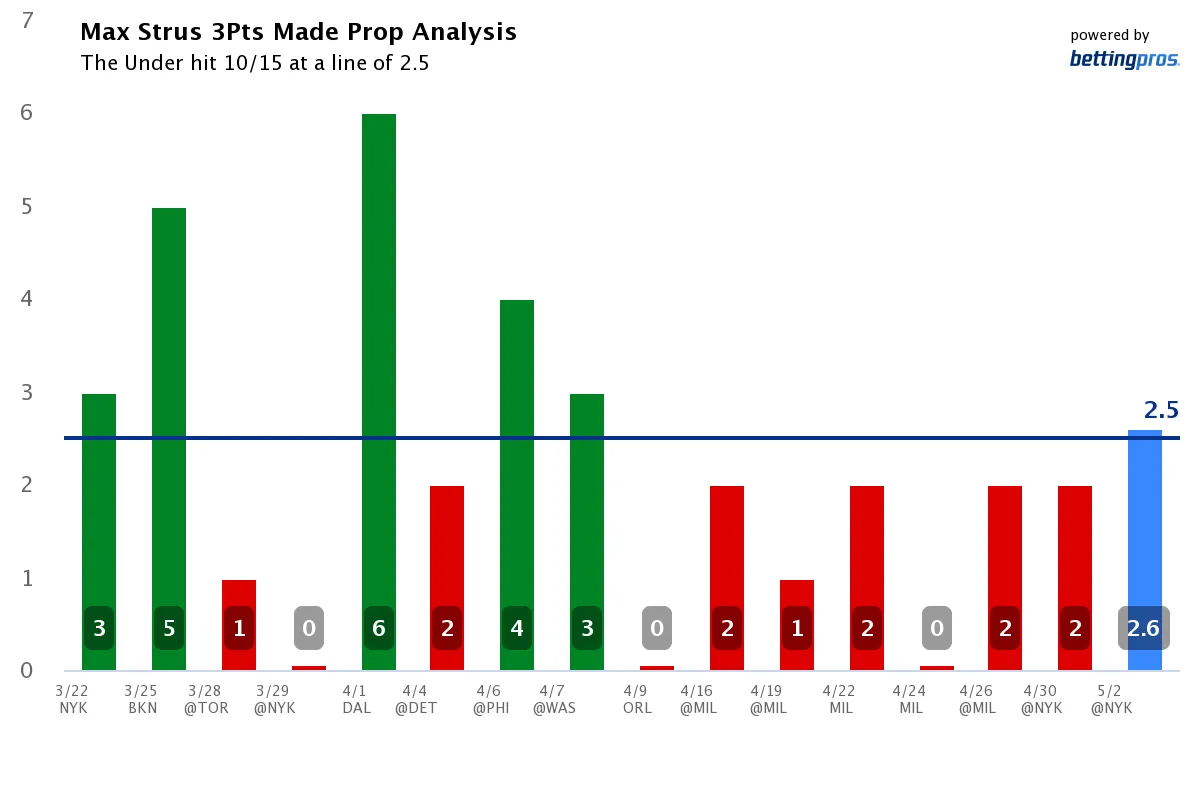 Max Strus Under 2.5 Three-Pointers (-115)