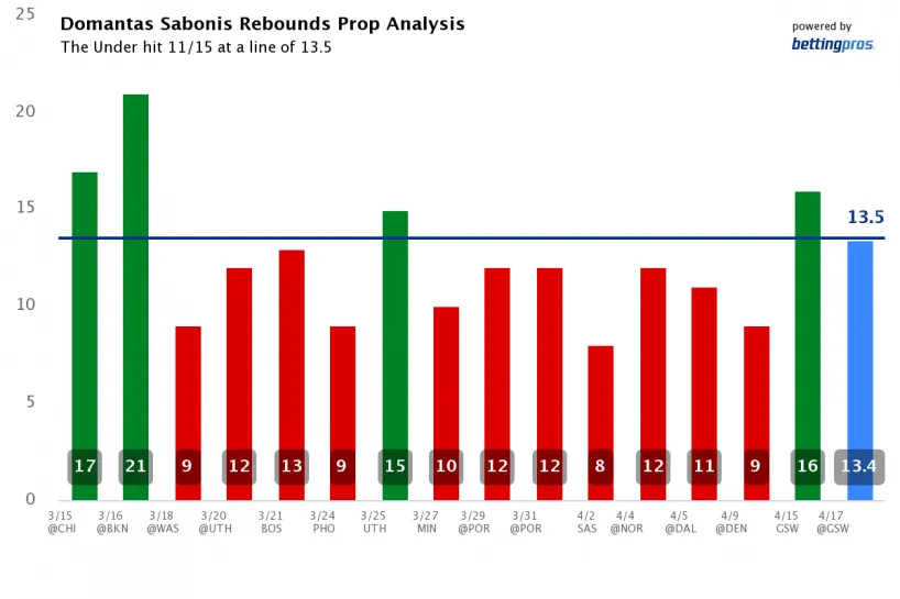 We should expect another fast-paced, high-scoring matchup between the top two scoring offenses. Sabonis finished the season leading the league in rebounds at 12.3 per game. Those numbers were even better against the Warriors, and in four games, including Game 1, he's averaging 16.5 rebounds.