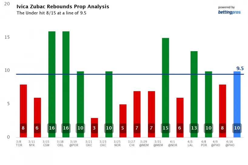 Ivica Zubiac UNDER 9.5 Rebounds (-111)