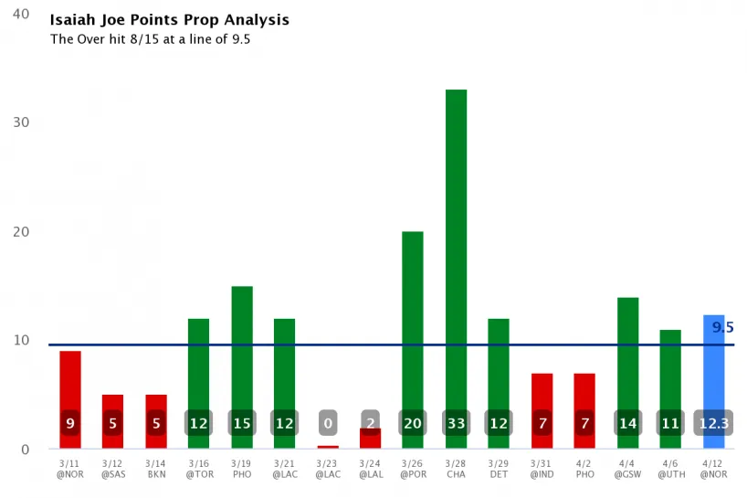 Isaiah Joe has hit at least 10 points in his last two games. He’s coming off a game against the Jazz where he attempted nine threes. He was only 3-for-9, but he could score enough points with a trip to the foul line. Joe isn’t the most consistent scorer on the team, but he’ll get his.