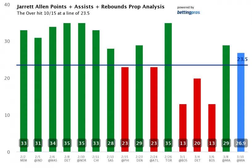 Averaging 25.9 PRA per game on the season, this line is simply too low for Jattett Allen. In two games against the Heat this year, the Fro has put up 25 and 29 PRA. Other big men have faired well against them as of late too: