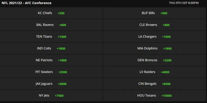 In the AFC West, Rumors have been going around all offseason about Aaron Rodgers heading to Denver. That said, it looks like they’ll be turning to Teddy Bridgewater instead. They will have to try and dethrone Patrick Mahomes and the Kansas City Chiefs to win the AFC West. The Los Angeles Chargers ended last year on a four-game winning streak, but can Justin Herbert continue the streak?