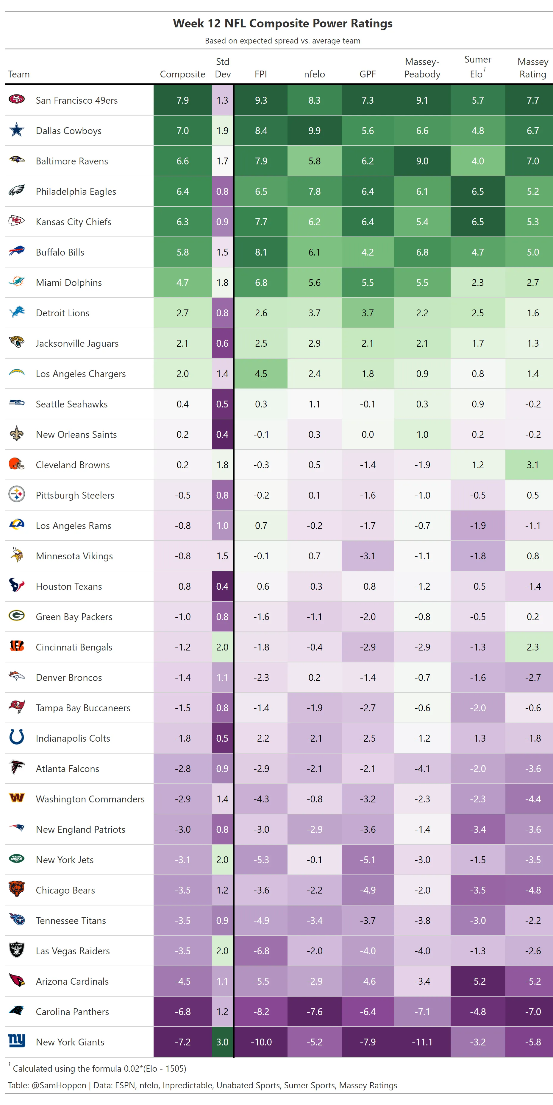 Week 12 NFL Composite Power Ratings
