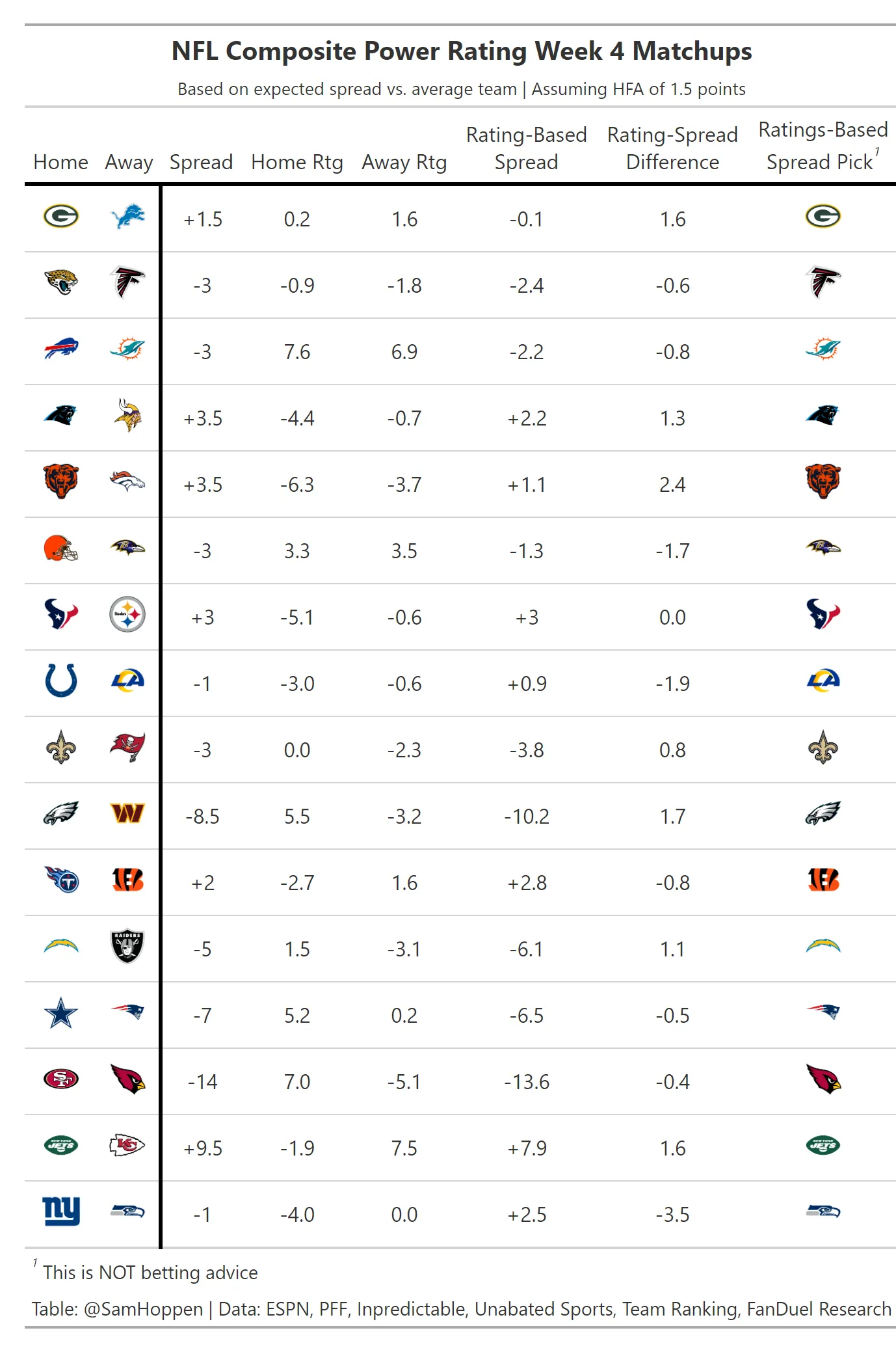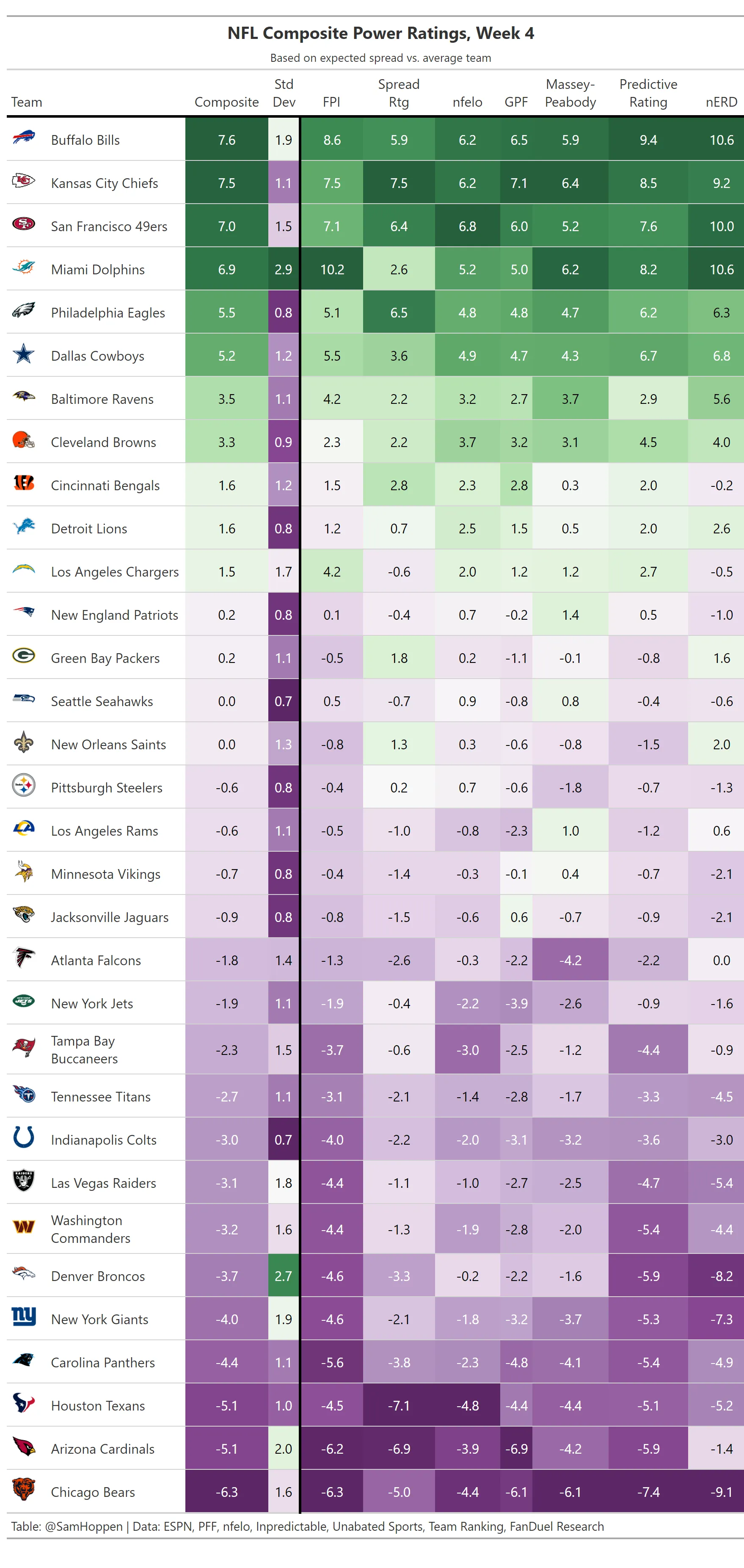 Week 4 NFL Composite Power Ratings