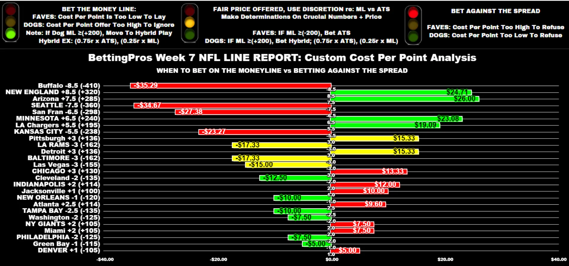 Welcome back to my Week 7 NFL Line Report at BettingPros, featuring my custom cost-per-point betting analysis. If you're unfamiliar with the concept, I encourage you to check out my Week 1 introduction.