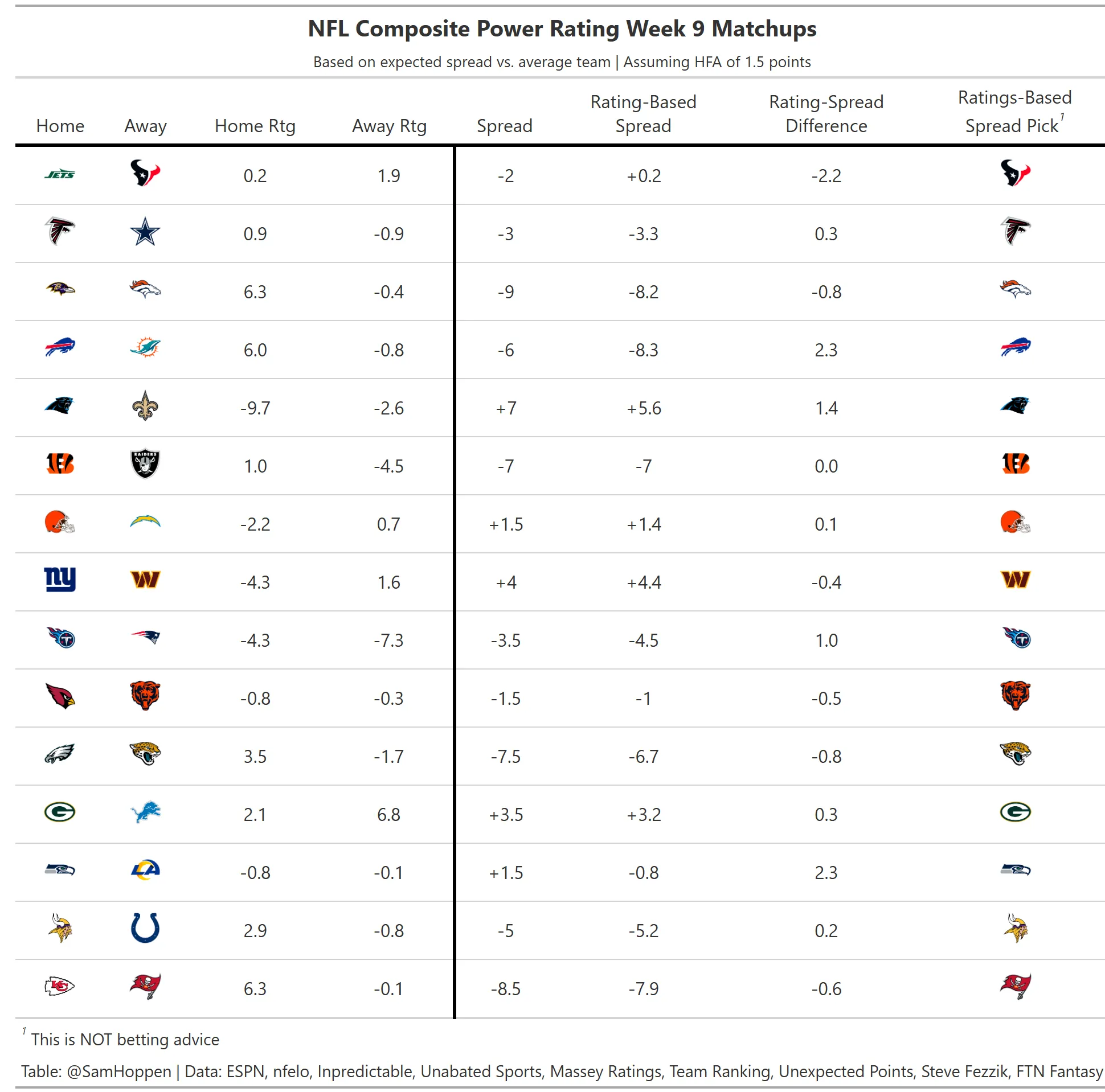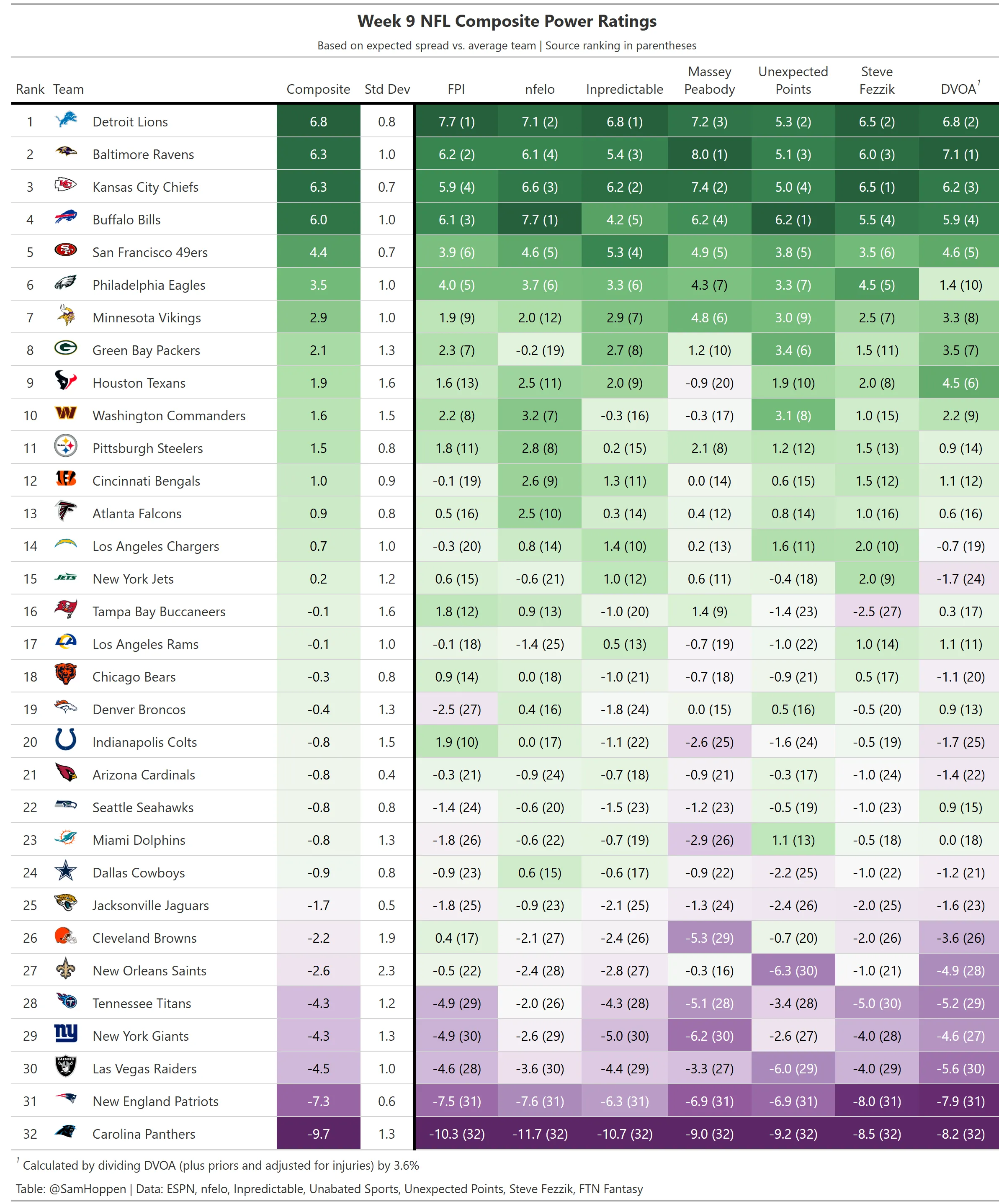 Week 9 NFL Composite Power Ratings