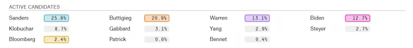 According to them, Sanders leads by 4.9 percent — a bit smaller than the RealClearPolitics average, but not much of one. I talked about what makes FiveThirtyEight’s average different when I wrote about Iowa, and you can read that here. They also model the results of each primary, and that gives us some numbers to weigh against sportsbooks’ odds. According to them, Sanders has a 67 percent chance to win the most votes, while Pete Buttigieg has a 28 percent chance. That gives anyone else just a five percent chance to come out ahead.