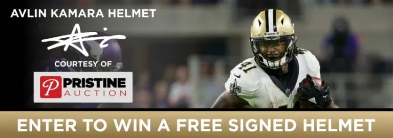 The season has now started and we’re coming to you with two episodes per week. Join in on the fun with this giveaway thanks to our friends at Pristine Auction. We’re giving away an authentic signed Alvin Kamara Saints helmet.